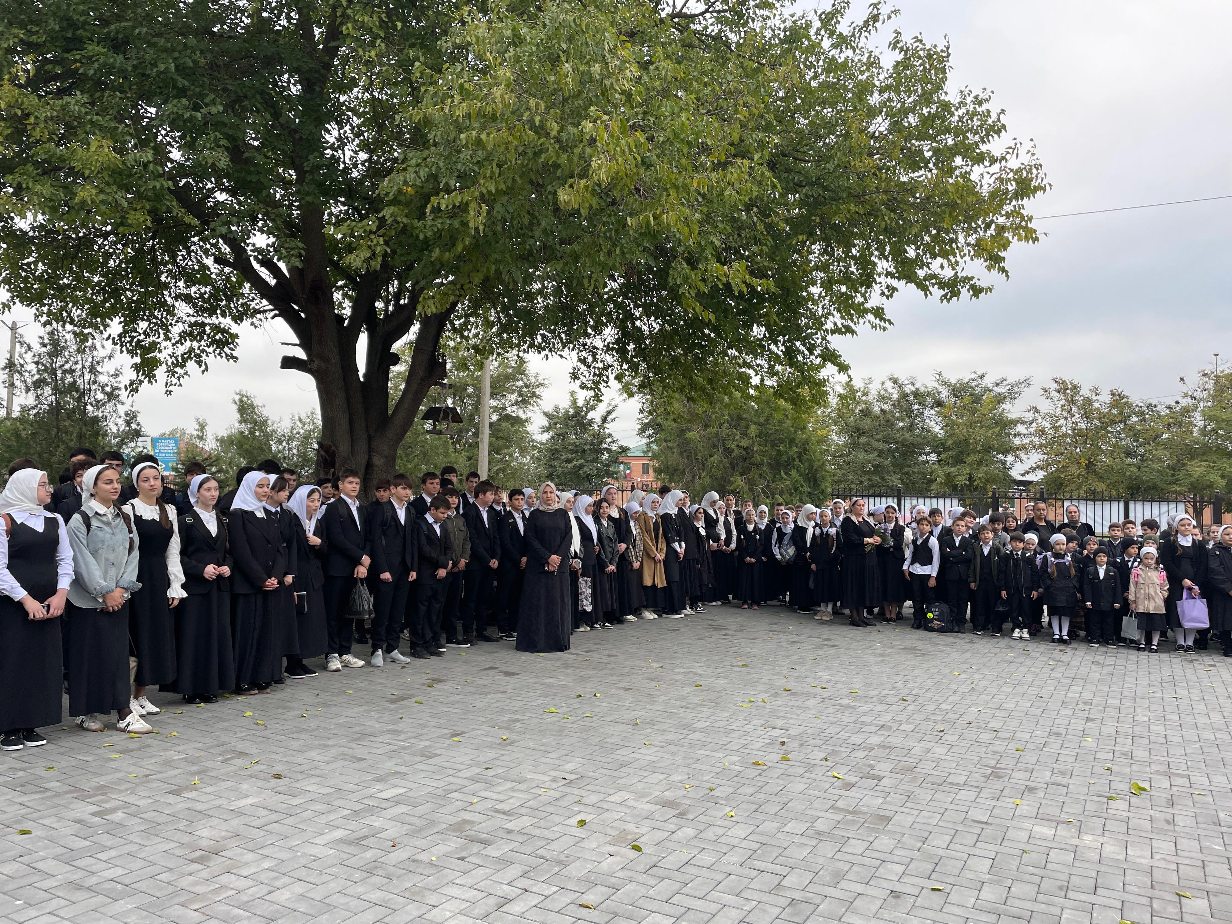 Мероприятие началось с традиционного поднятия трех государственных символов: флага Российской Федерации, флага Чеченской Республики и символического знамени города Шелковская. Церемонию провели учащиеся школы, члены молодежного движения юных кадыровцев.