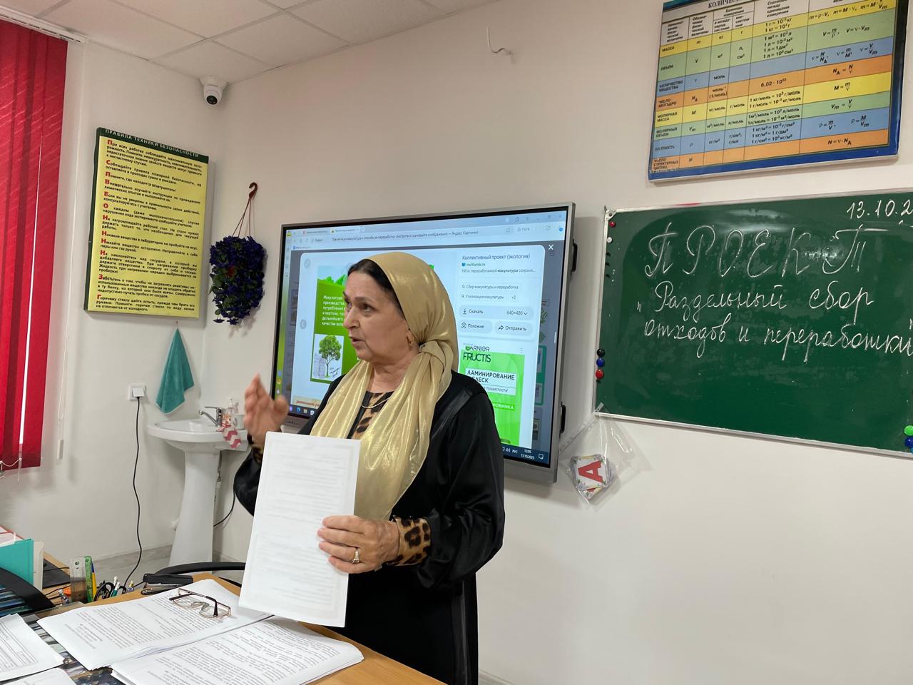 В целях повышения экологической грамотности среди старшеклассников зам.директора по МР - Мавсарова Сияда Алавудиновна организовала образовательный проект для учащихся 11а класса на тему: «Раздельный сбор отходов и переработка».