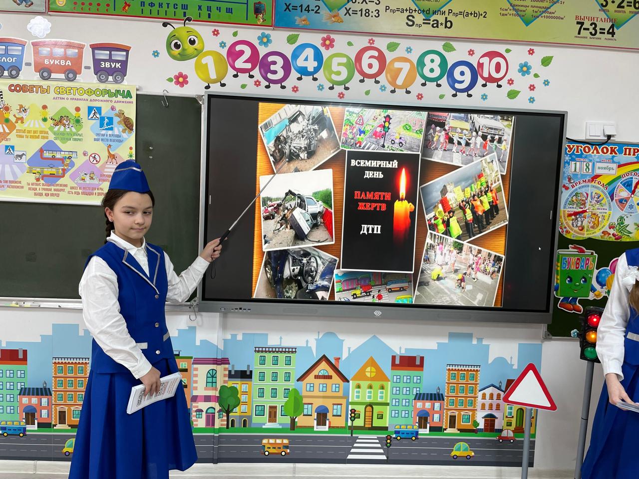 В рамках Дня памяти жертв дорожно-транспортных происшествий (ДТП) — 18 ноября 2025 года — отряд юных инспекторов движения «Светофорик» совместно с классным руководителем провел интерактивные занятия с учениками младших классов начальной школы.