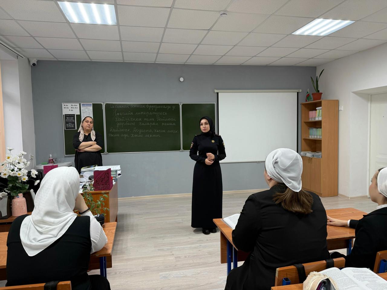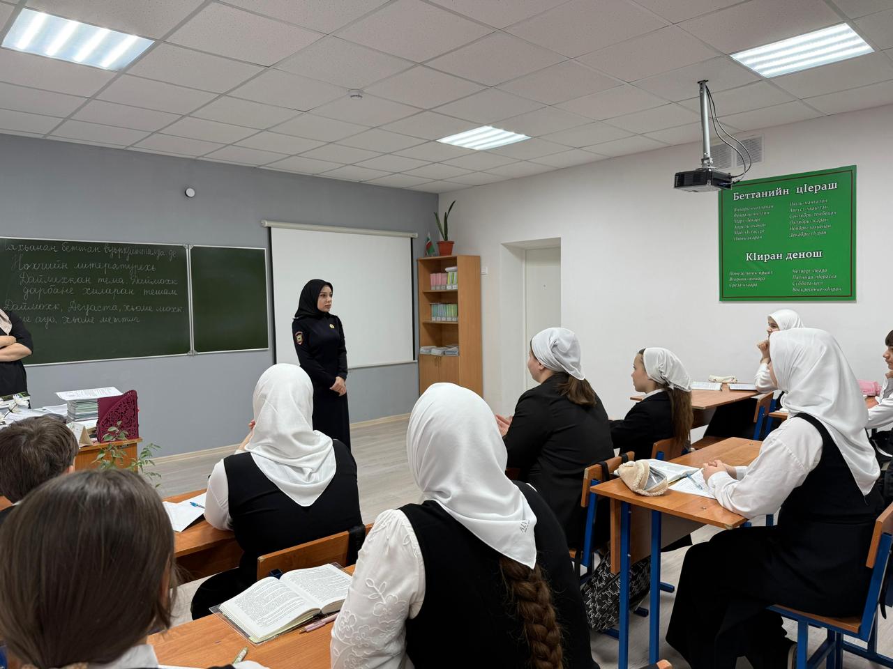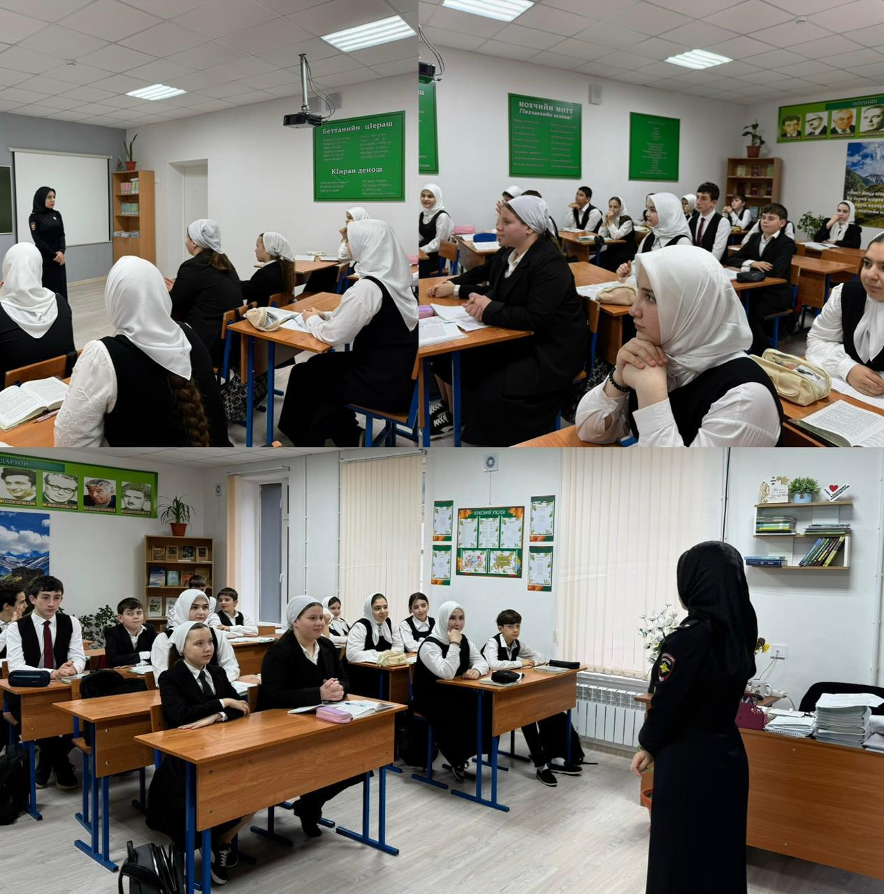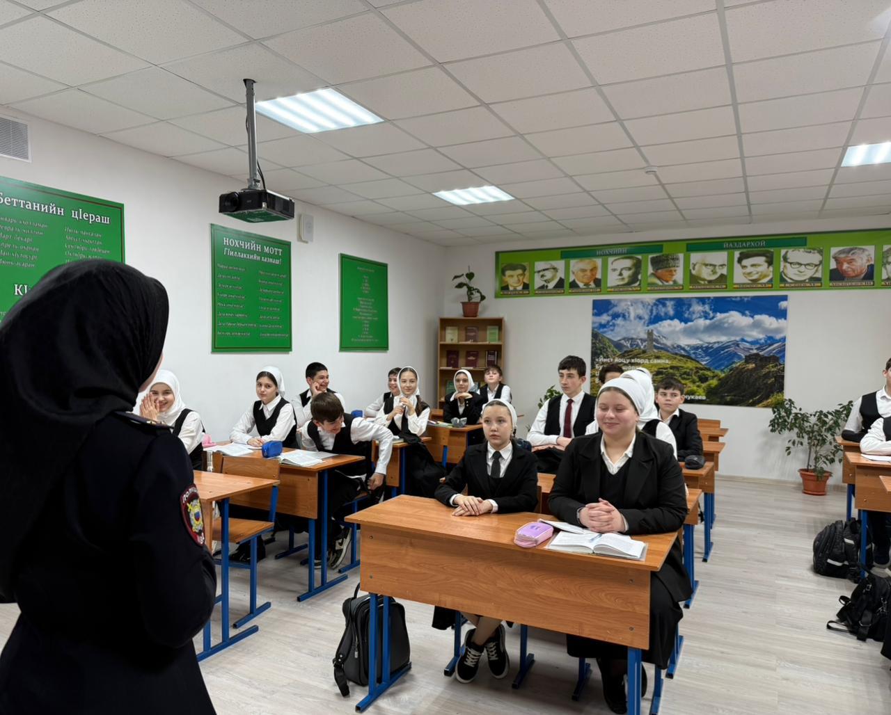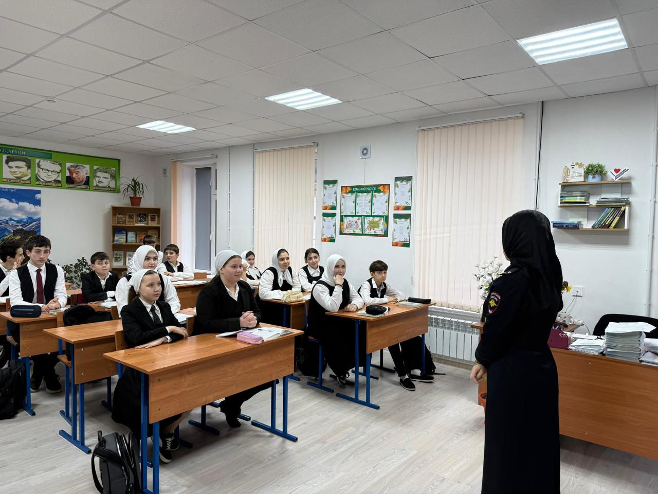 В преддверии наступления новогодних праздников сотрудник подразделения по делам несовершеннолетних Улубаева Индира Зуратовна организовала и провела профилактические беседы с обучающимися муниципального бюджетного общеобразовательного учреждения «Средняя общеобразовательная школа №3 города Шелковская».