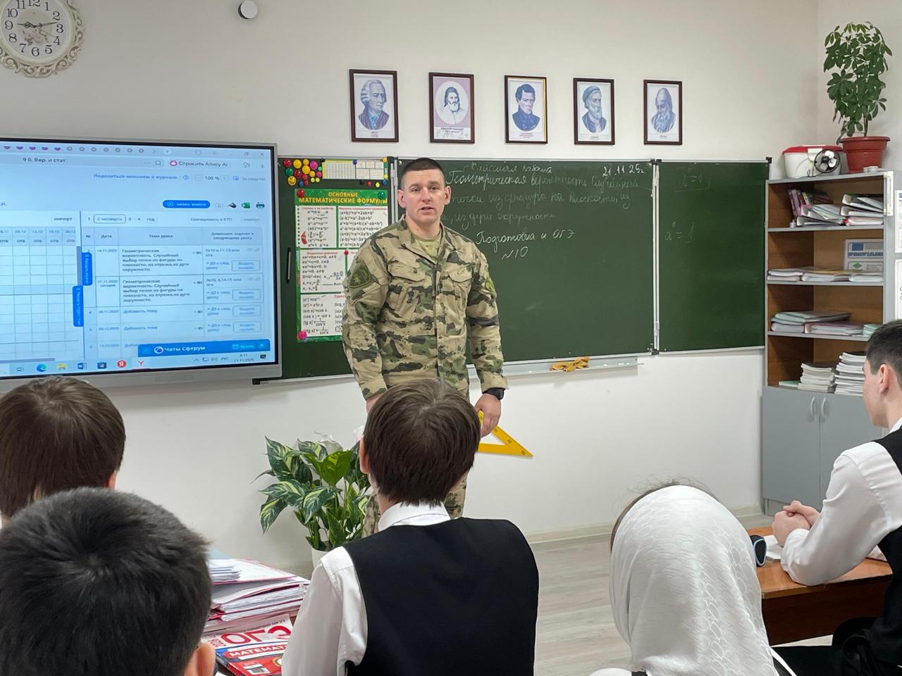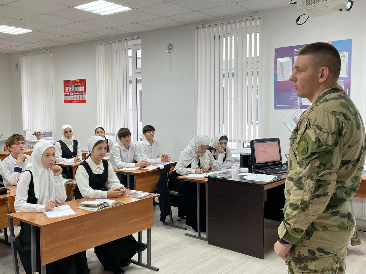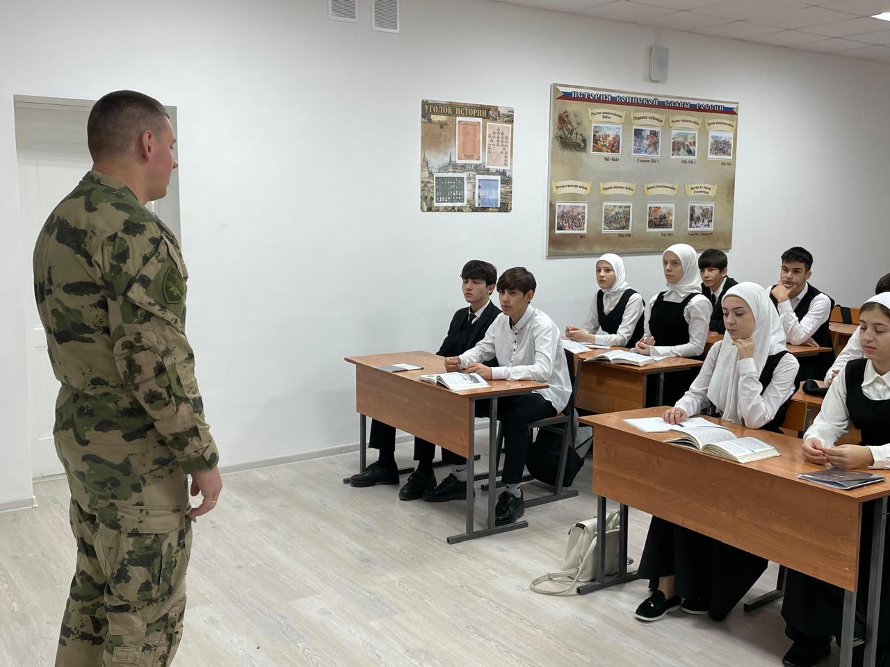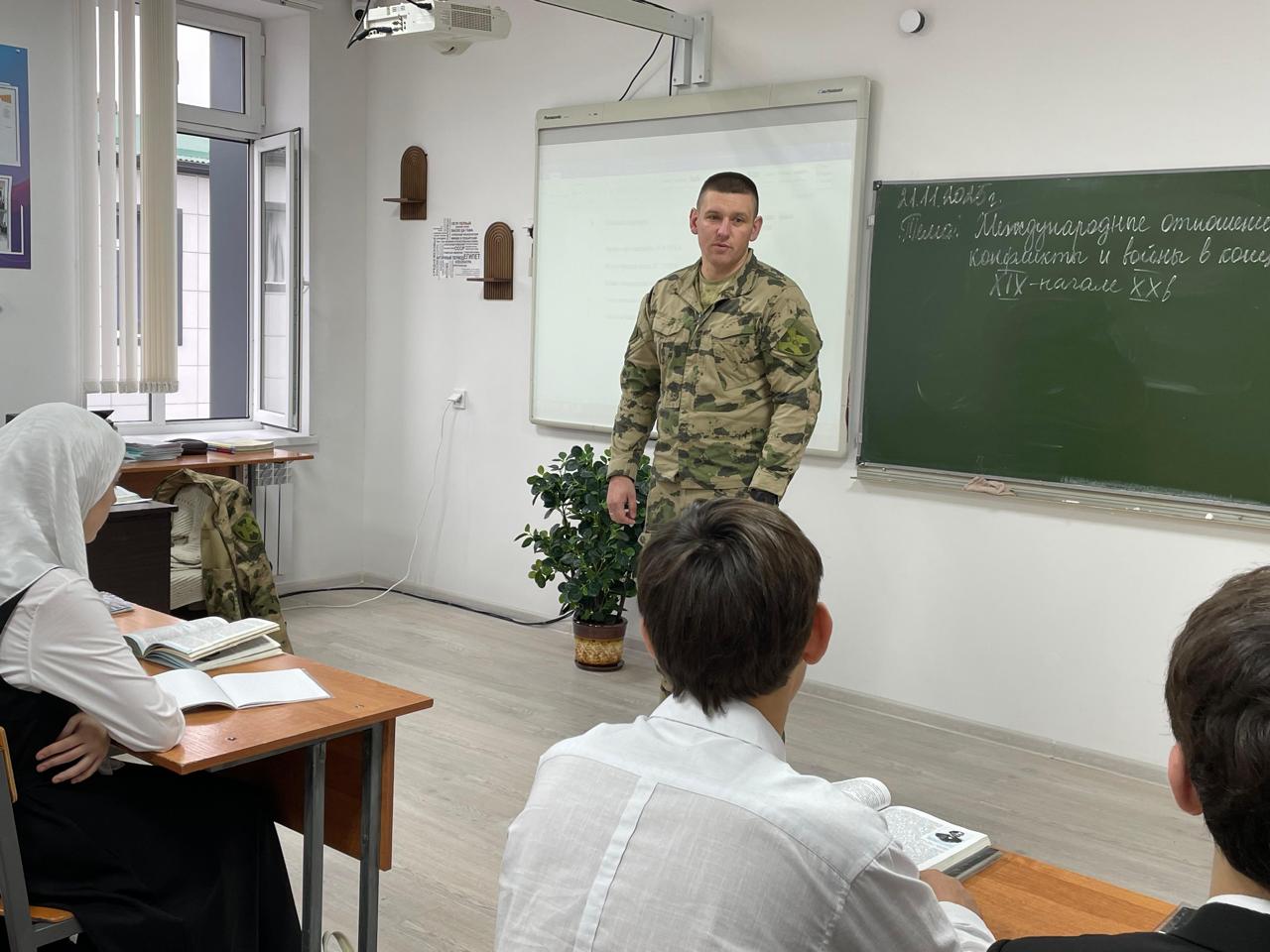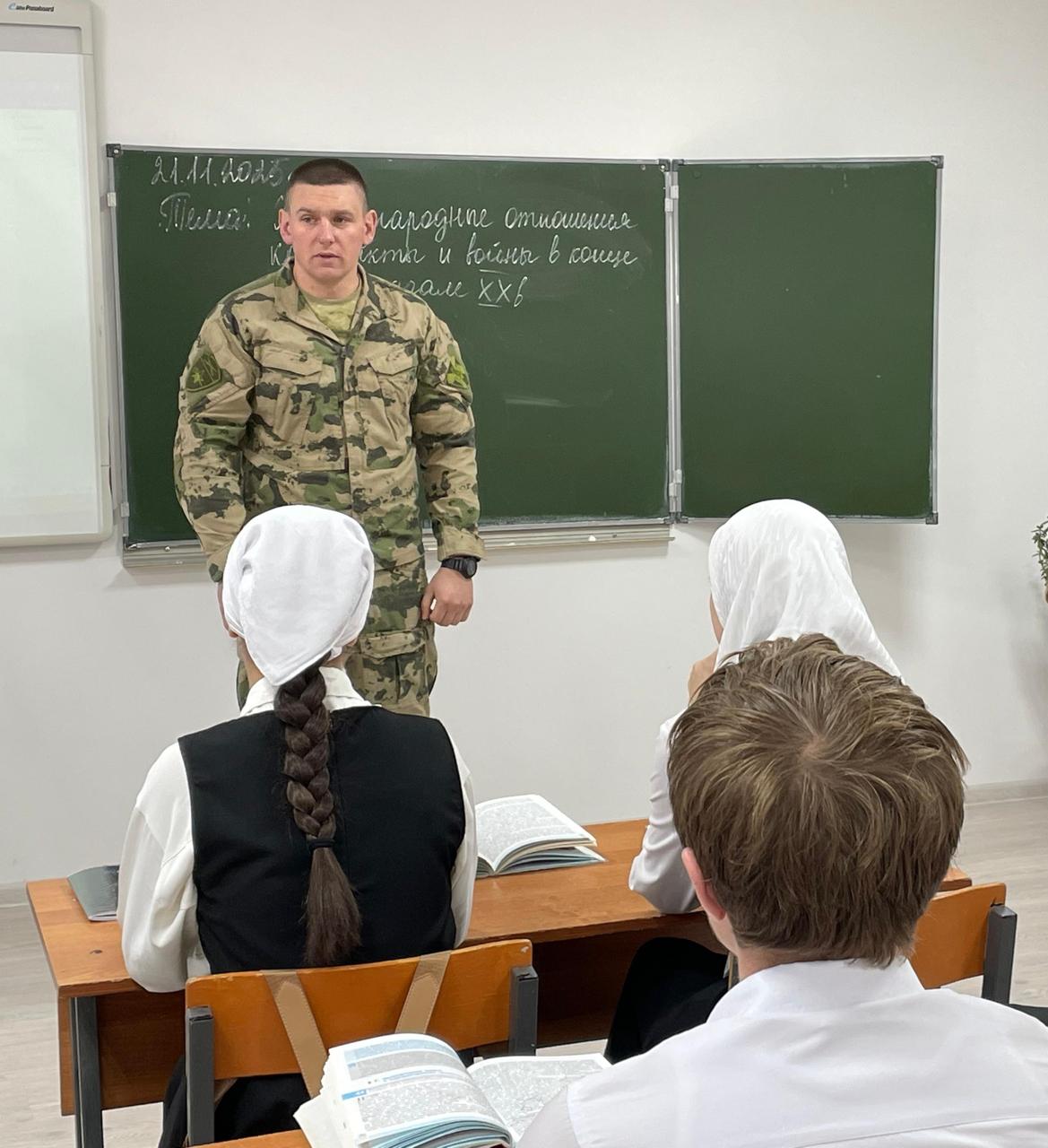21 ноября 2025 года, в стенах Муниципального бюджетного общеобразовательного учреждения «Средняя общеобразовательная школа №3 города Шелковская» состоялась важная классная встреча обучающихся 9В класса с заместителем командира военного подразделения Черваневым М. М.