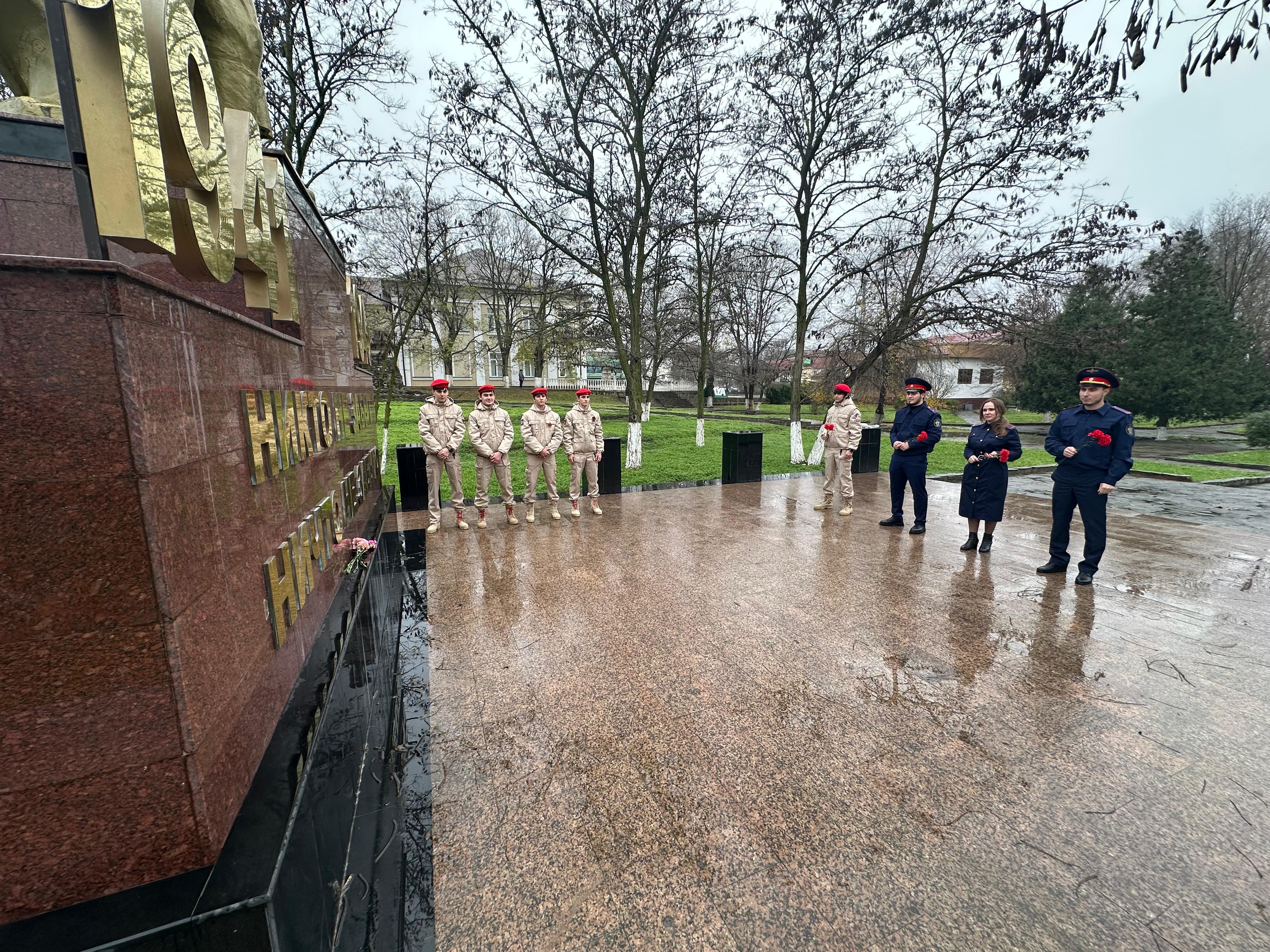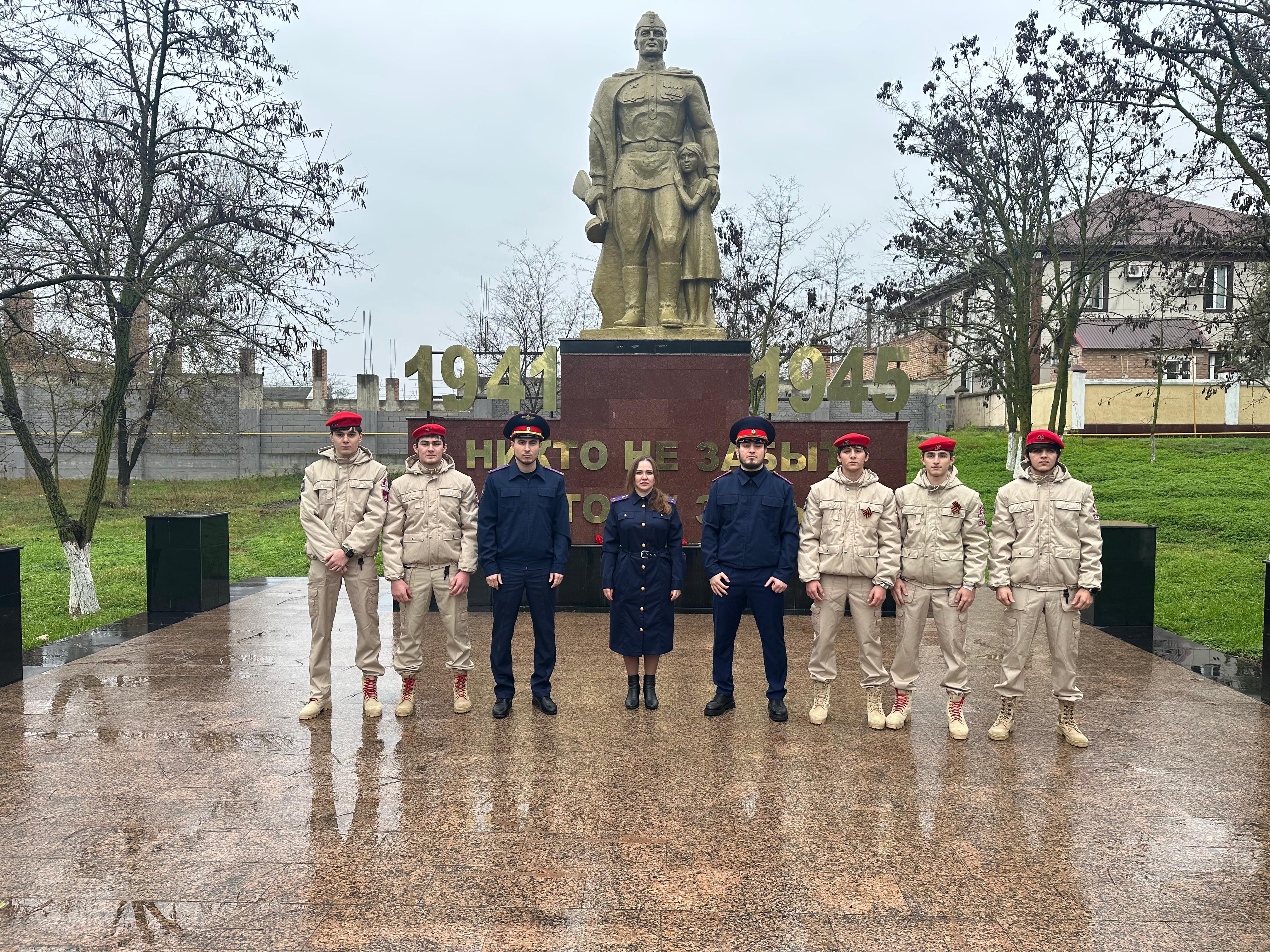3 декабря юнармейцы МБОУ «СОШ №3 г. Шелковская» совместно с представителями Следственного комитета организовали торжественное мероприятие, приуроченное ко Дню неизвестного солдата. Участниками были возложены цветы к памятнику неизвестному солдату, выражая благодарность и почтение героям, чье имя неизвестно.