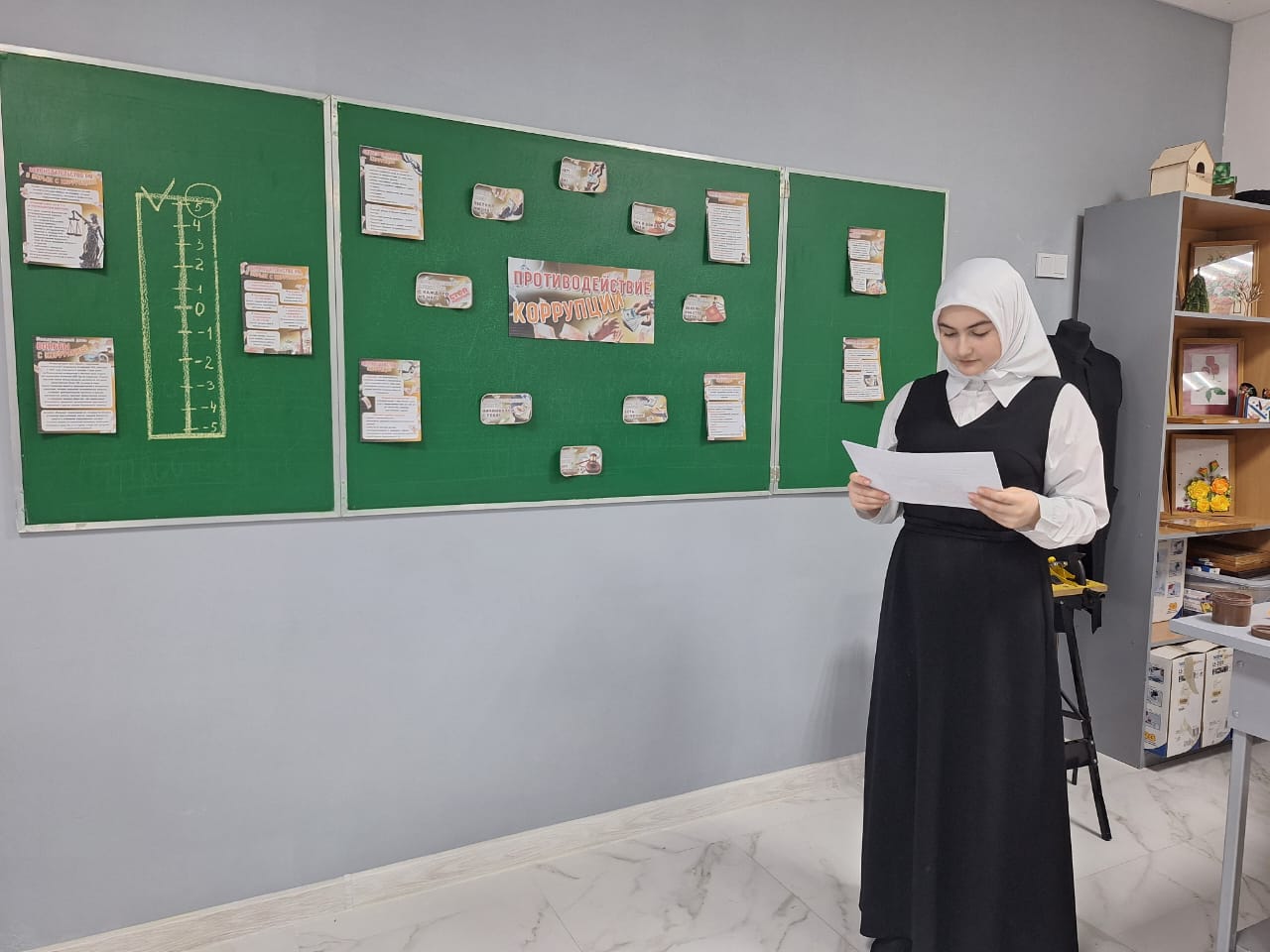 В МБОУ"СОШ№3 г. Шелковская " прошла важная беседа с социальным педагогом Серсаевой Л. Х. посвящённая теме коррупции.