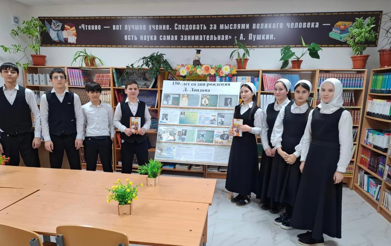 Совсем недавно наша школа стала местом проведения уникальной книжной выставки, организованной нашим дорогим педагогом и зав. библиотекой — Джабаевой Масрой Абдусупьяновной. Экспозиция была посвящена знаменательной дате — 150-летнему юбилею со дня рождения легендарного американского писателя Джека Лондона, чьи произведения стали классикой мировой литературы.