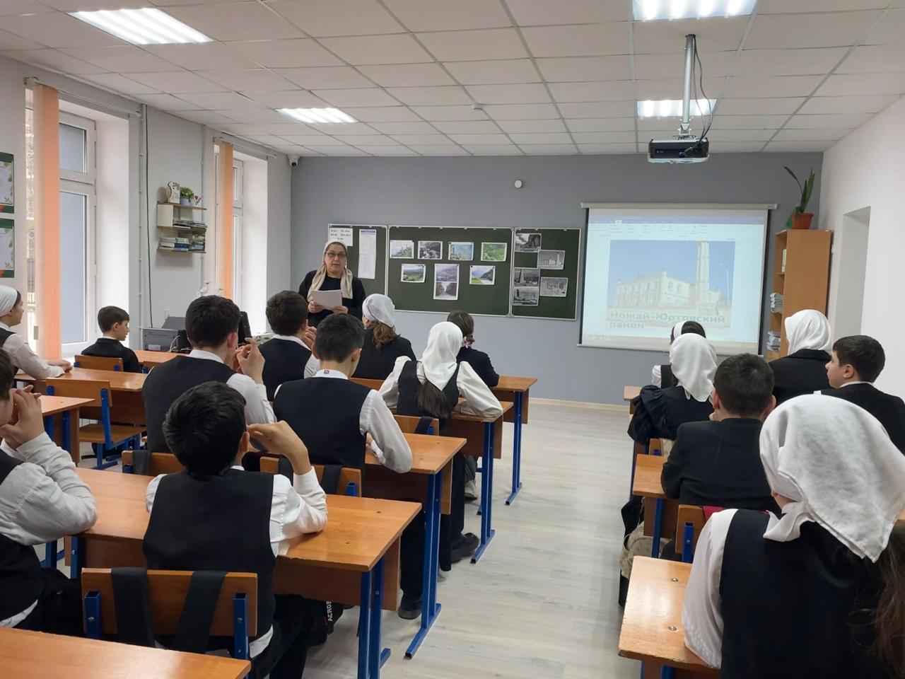 В рамках реализации плана мероприятий по развитию горных районов Чеченской Республики в 2026 году, учитель чеченского языка и литературы Джабаева Хадижат Имрановна организовала интересный классный час для учеников 7А класса. Цель мероприятия заключалась в знакомстве учащихся с особенностями природы, культуры и истории горных районов республики.