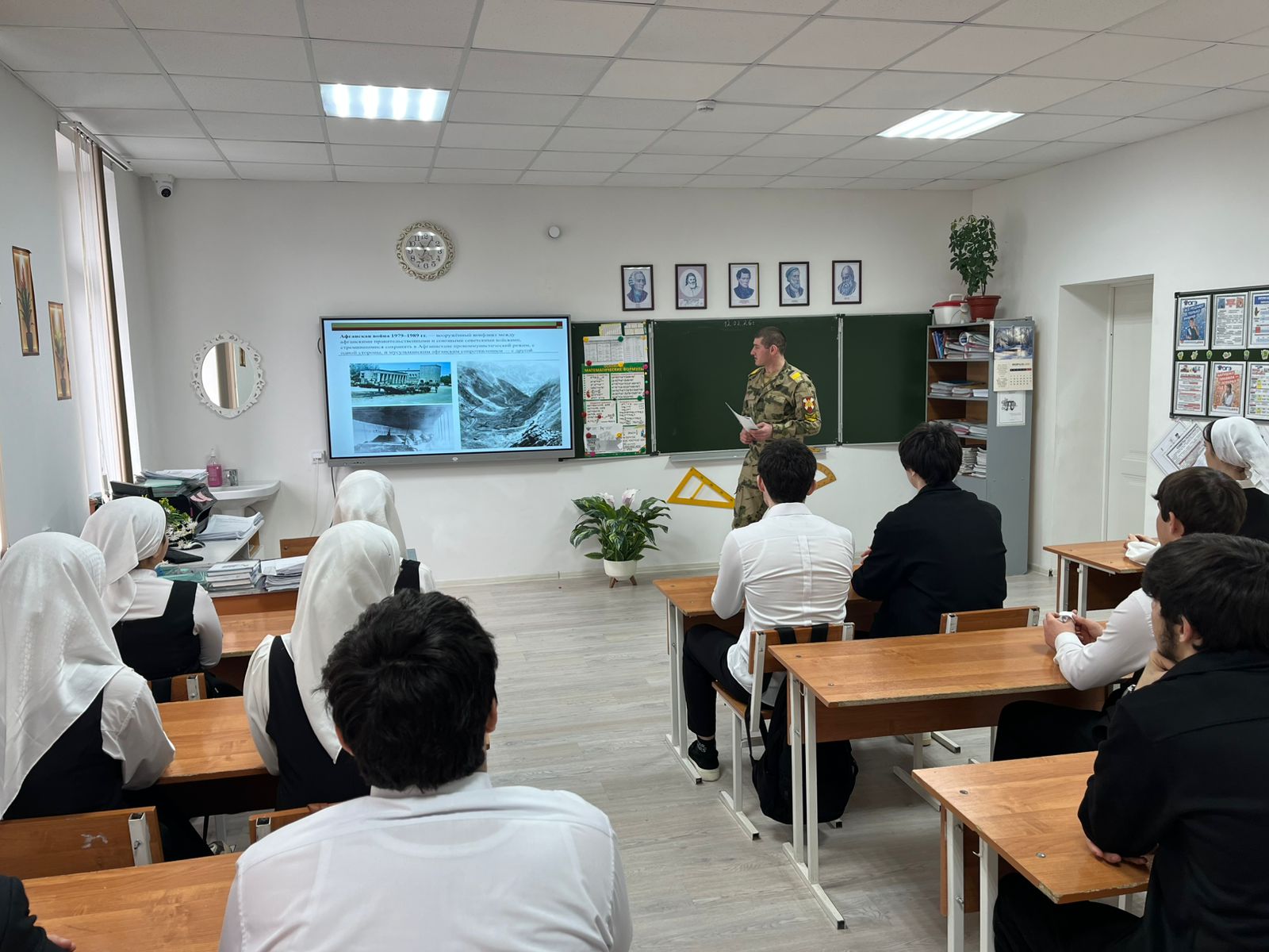 Накануне памятной даты - вывода советских войск из Афганистана, в школе №3 города Шелковская состоялась встреча учеников 10а класса с представителями военной части. Гостями мероприятия стали военнослужащие части №6499: капитан Никульников Артем Сергеевич и сержант Габибулаев Джамалдин Аладинович, курсант Новосибирского военного института.