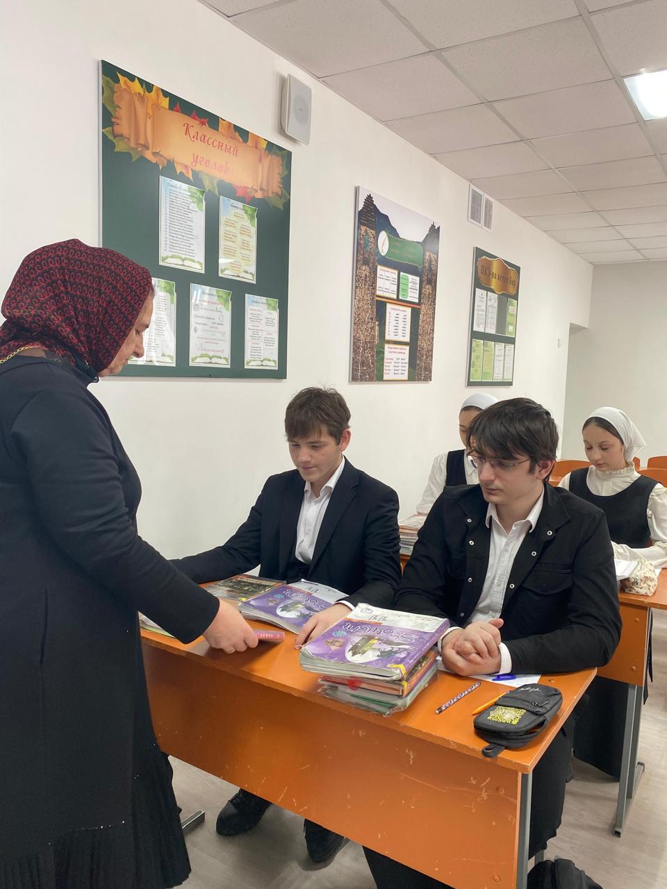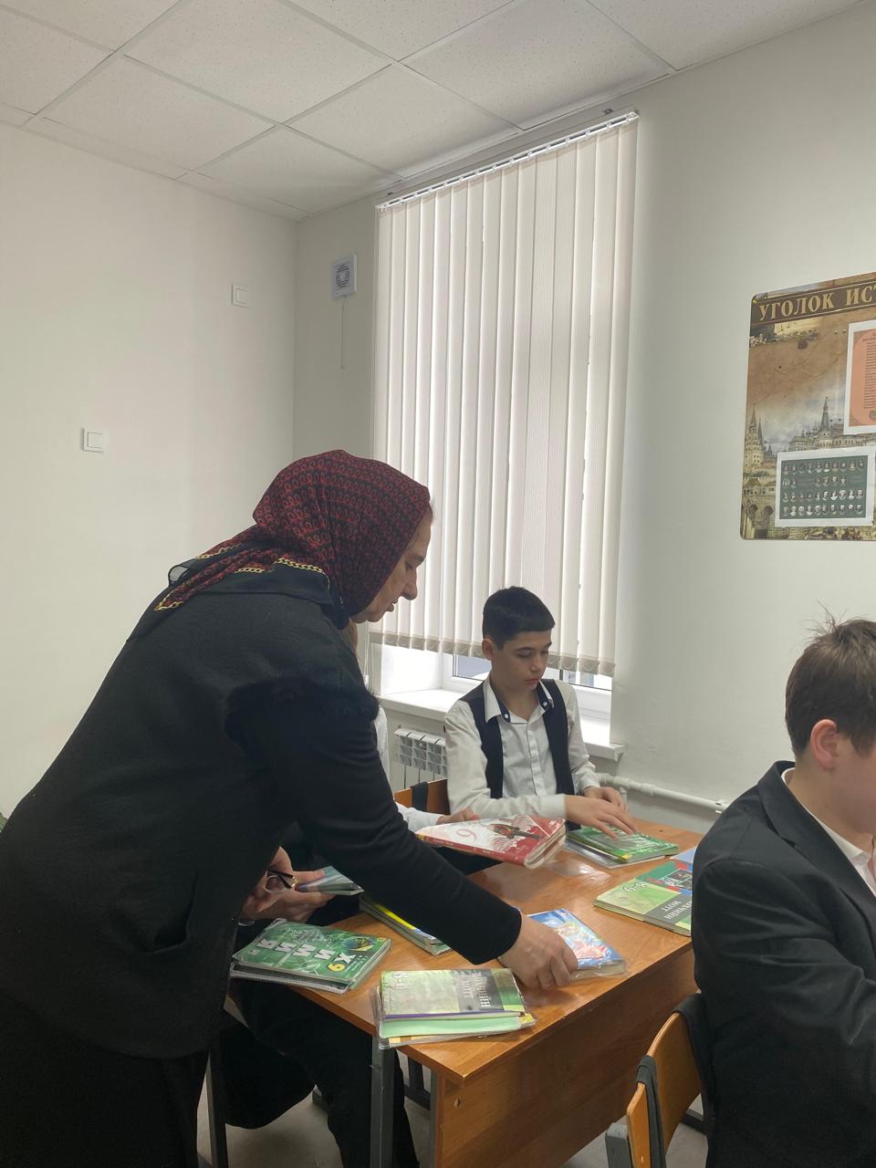 В рамках мероприятий по обеспечению качественного образовательного процесса заведующая библиотекой нашей школы Джабаева Масра Абусупьяновна совместно с педагогом-организатором провела проверку наличия учебных пособий среди учащихся согласно установленному расписанию уроков, а также оценила состояние самих книг.
