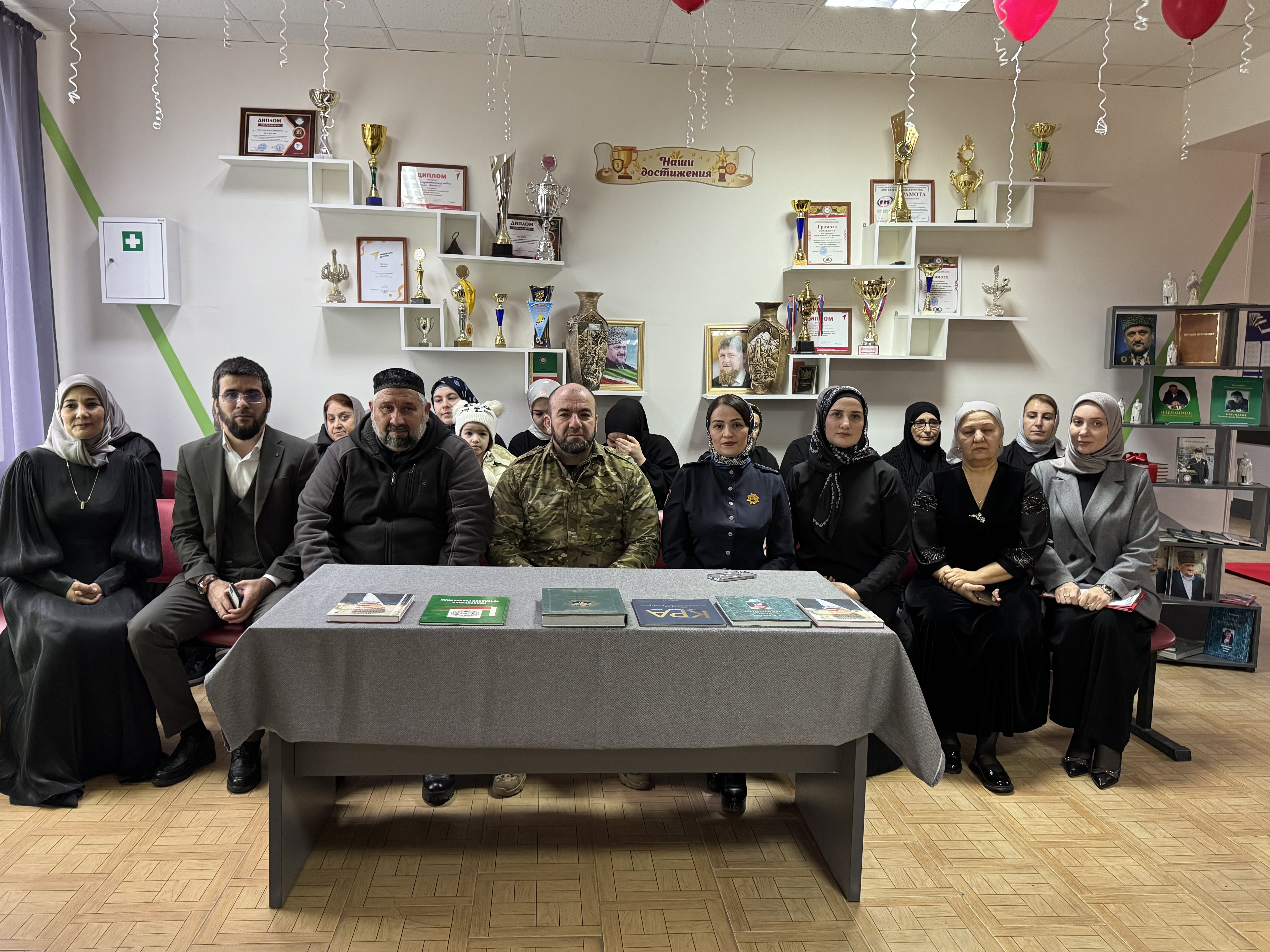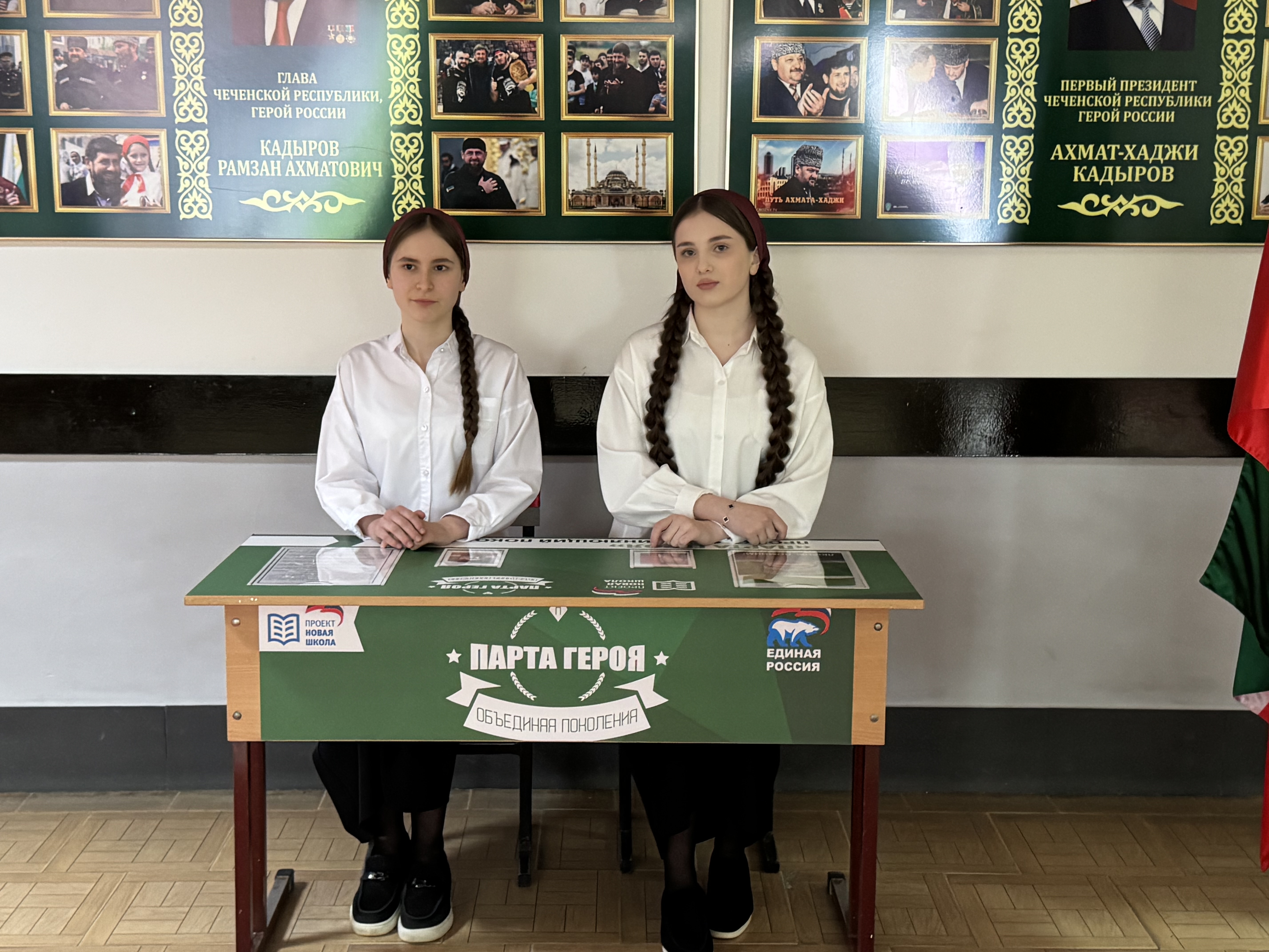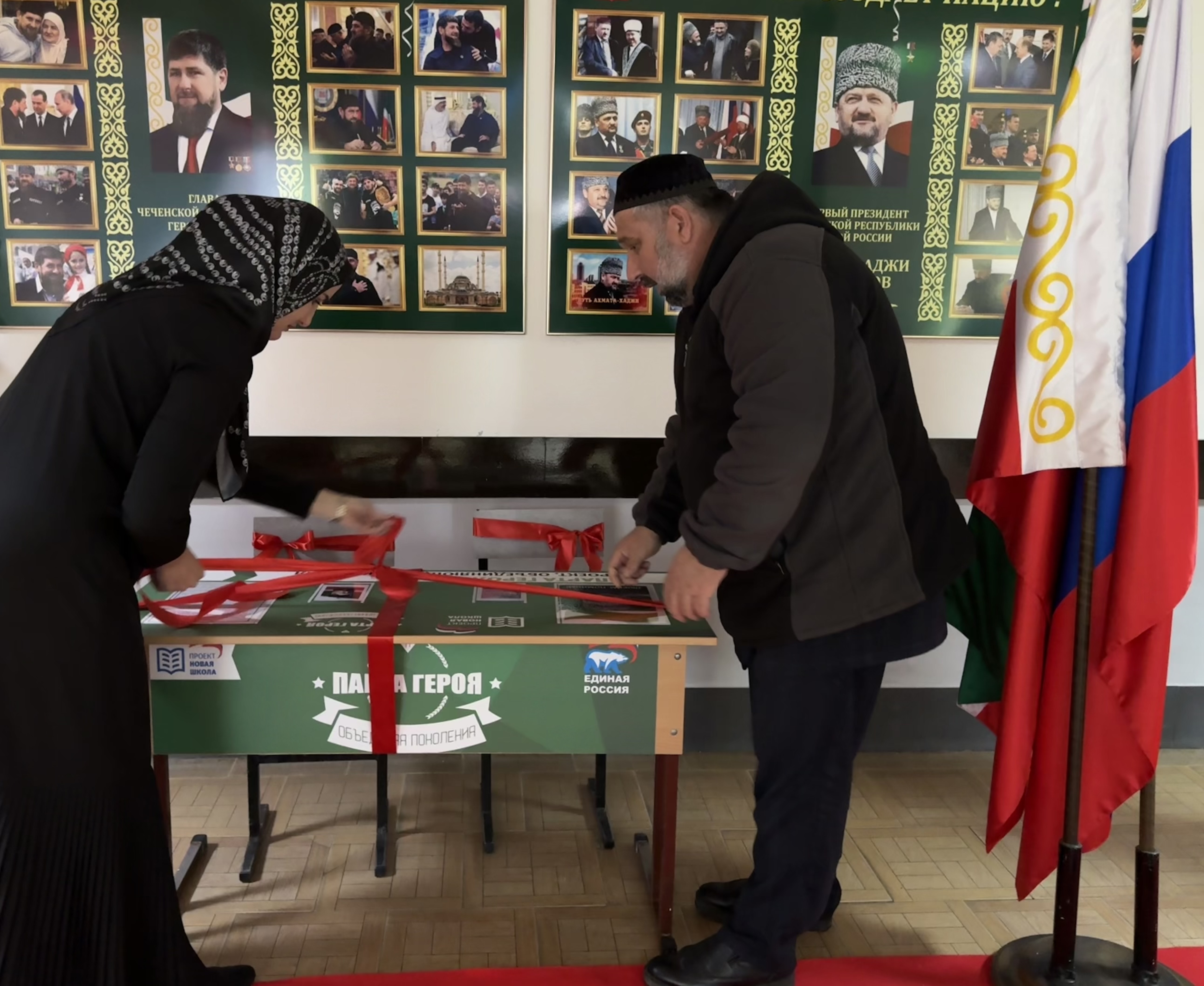 «Парта героя» была  посвящена Первому Президенту Чеченской Республики, Герою России Ахмата-Хаджи Кадырову ( Дала г1азот къобал дойла цун).
