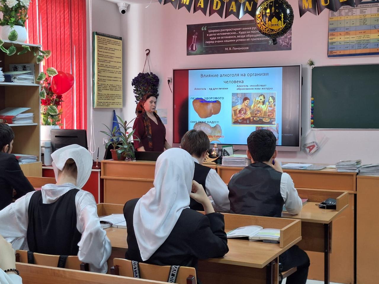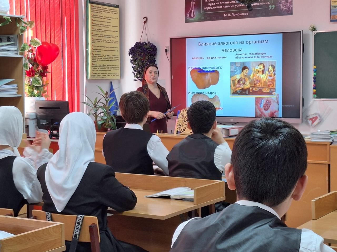 Во время урока Сияда Алавудиновна уделила значительное внимание воздействию алкогольных напитков на организм подростков. Она подчеркивала, что даже умеренные количества спиртного оказывают негативное влияние на развитие головного мозга, функционирование печени, сердечно-сосудистую систему и иммунитет.