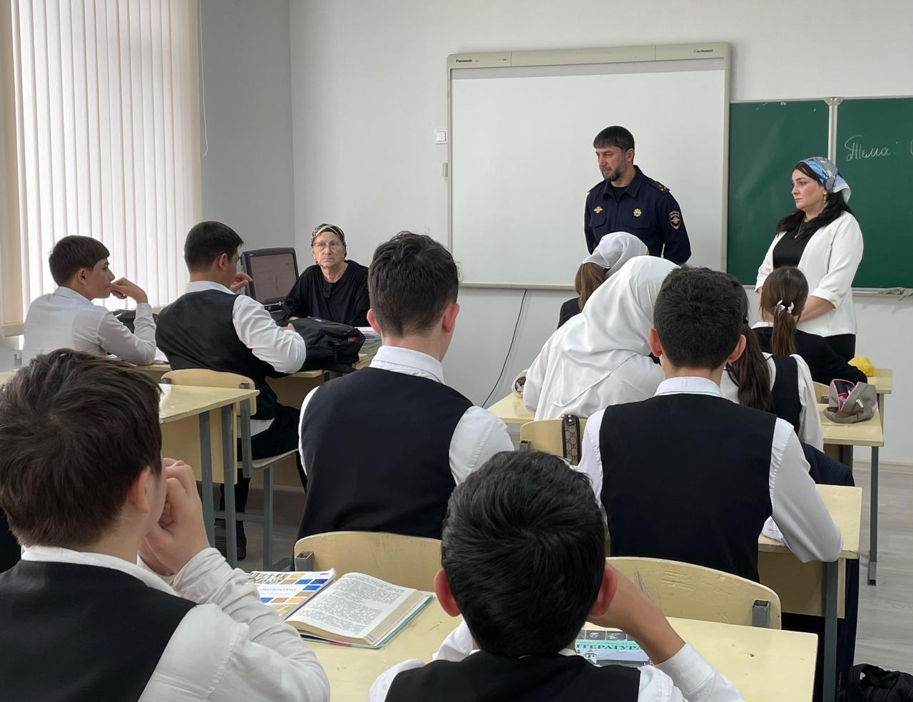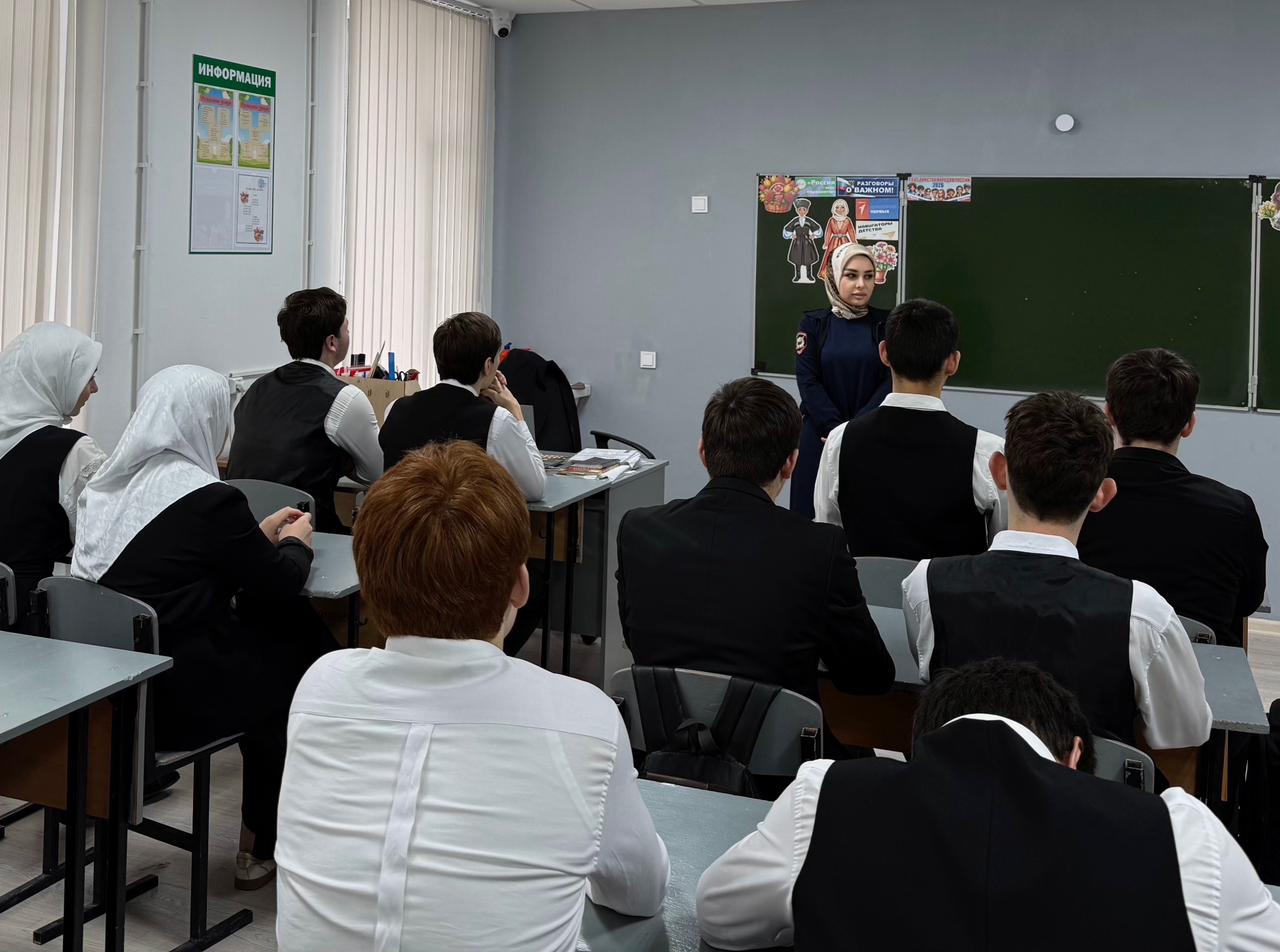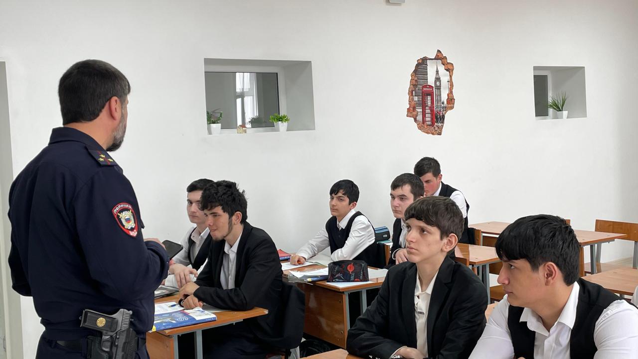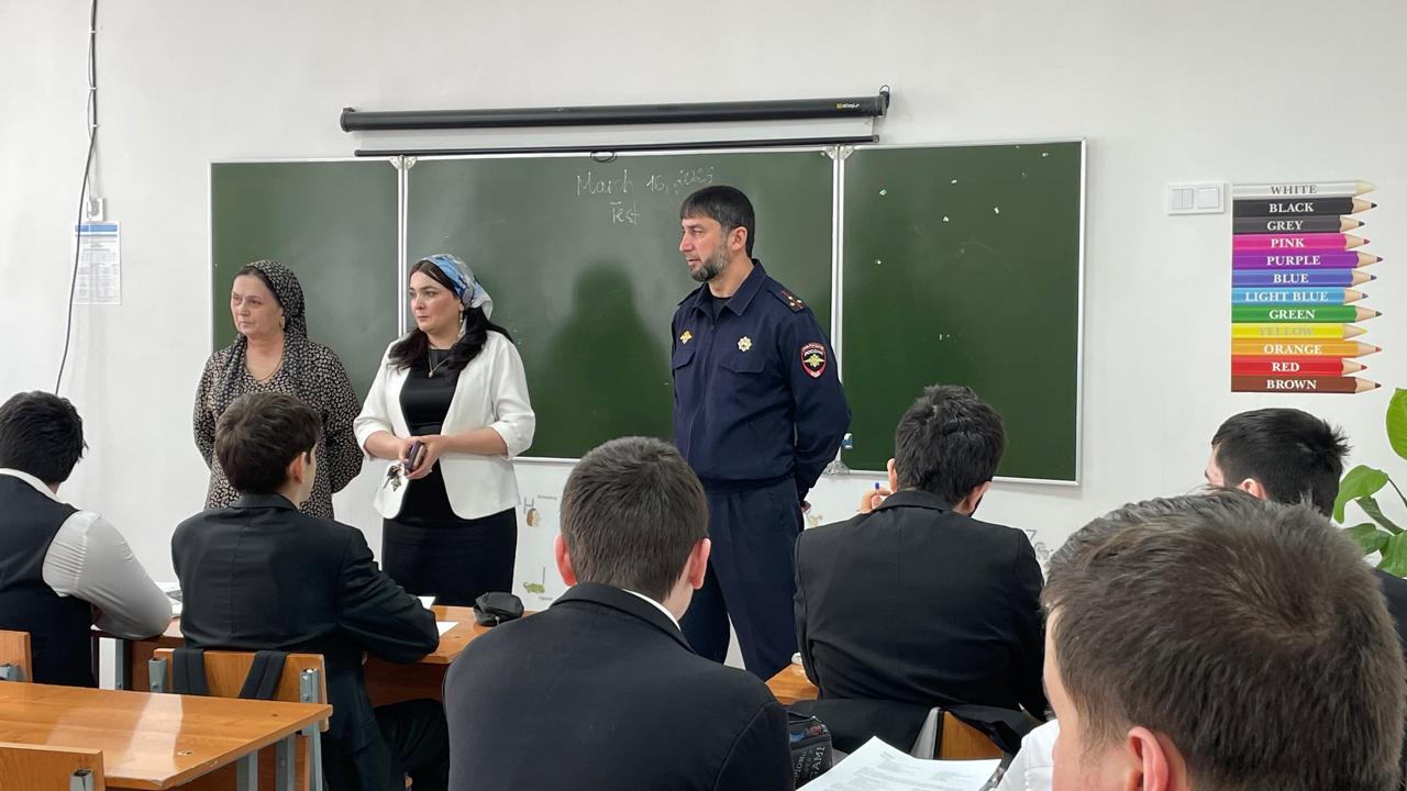 В рамках исполнения протокола Комиссии по делам несовершеннолетних и защите их прав, в нашей школе состоялась важная профилактическая встреча. Сотрудники подразделения по делам несовершеннолетних — лейтенант полиции И. З. Улубаева и начальник ПДН, старший лейтенант полиции И. З. Хесимханов провели беседу с обучающимися старших классов.