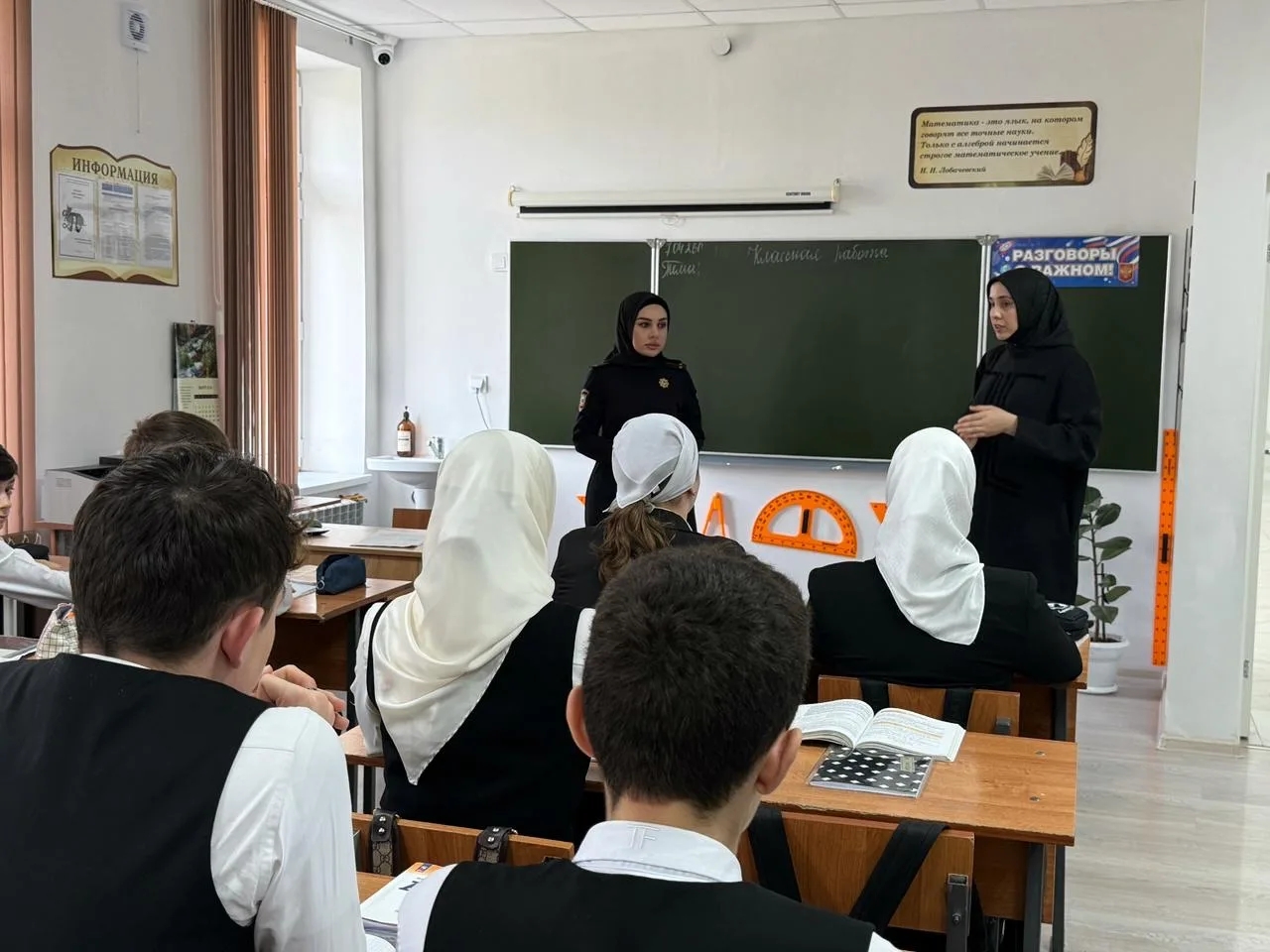 Советник директора по воспитанию Гаибова Аминат Алхазуровна совместно с инспектором ПДН, лейтенантом полиции Улубаевой И.З., провела серию профилактических бесед для обучающихся 7–11 классов. В ходе встреч школьники узнали о последствиях употребления запрещённых веществ, юридических аспектах ответственности и важности сохранения своего здоровья и будущего. Особое внимание было уделено развитию критического мышления и умению противостоять негативному влиянию окружения.