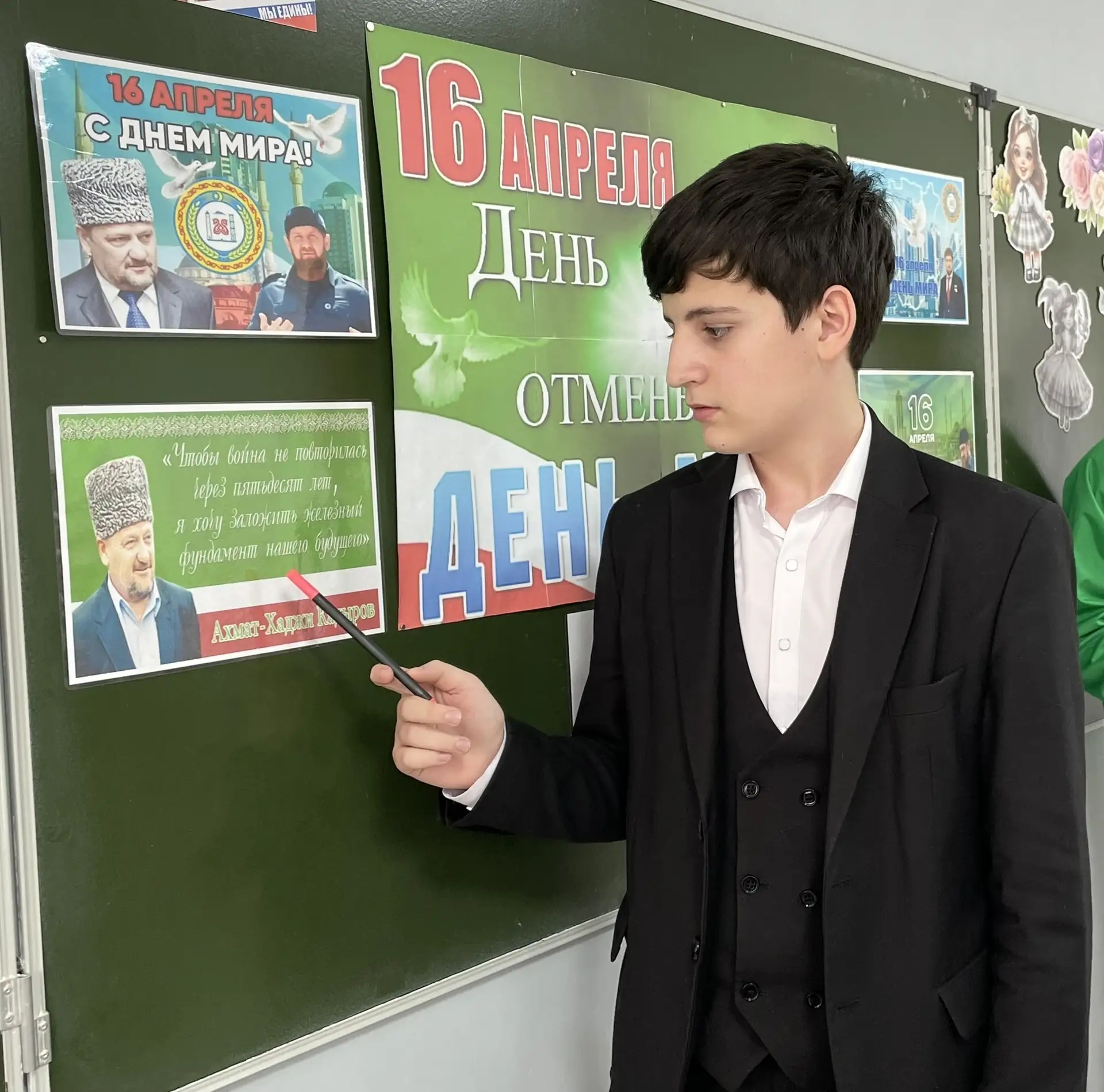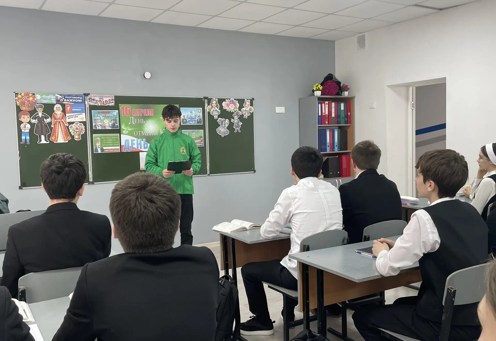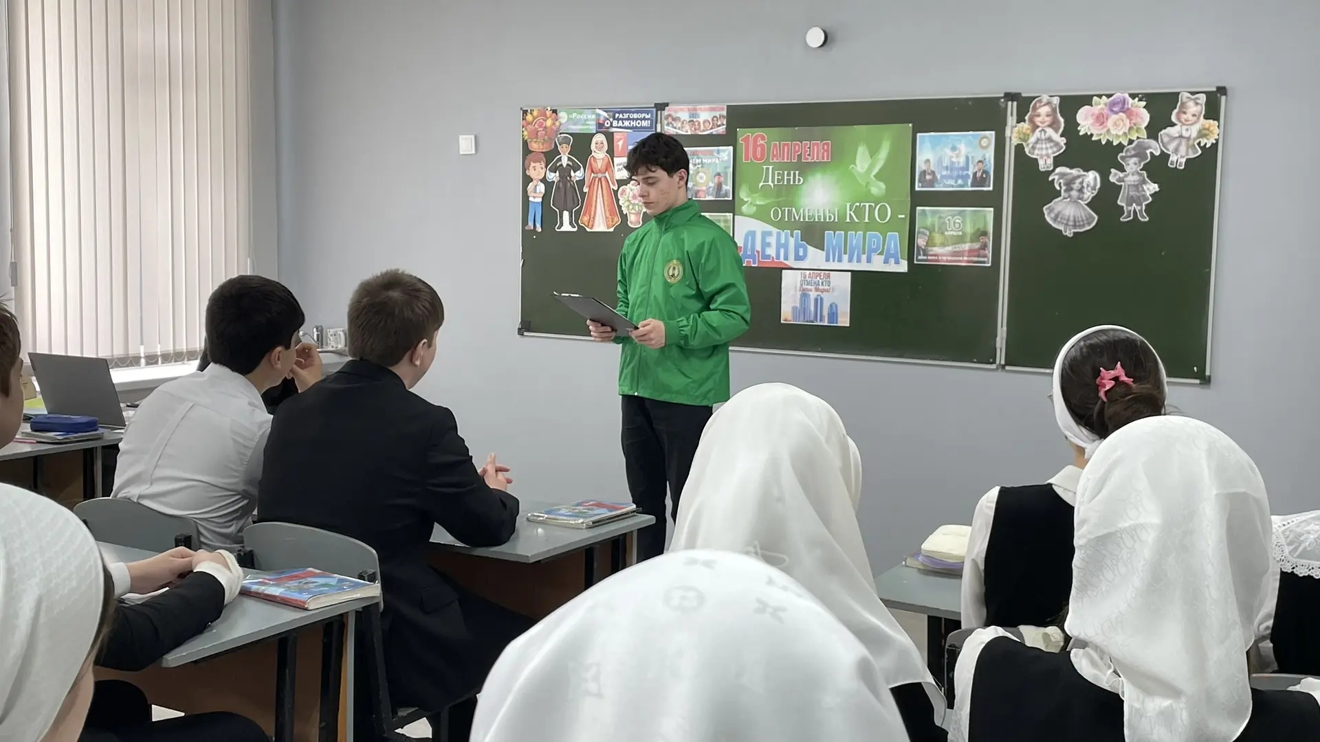 В преддверии Дня Мира в Чеченской Республике для обучающихся 8-Б класса был проведён тематический классный час, посвящённый 16 апреля — Дню отмены контртеррористической операции (КТО).