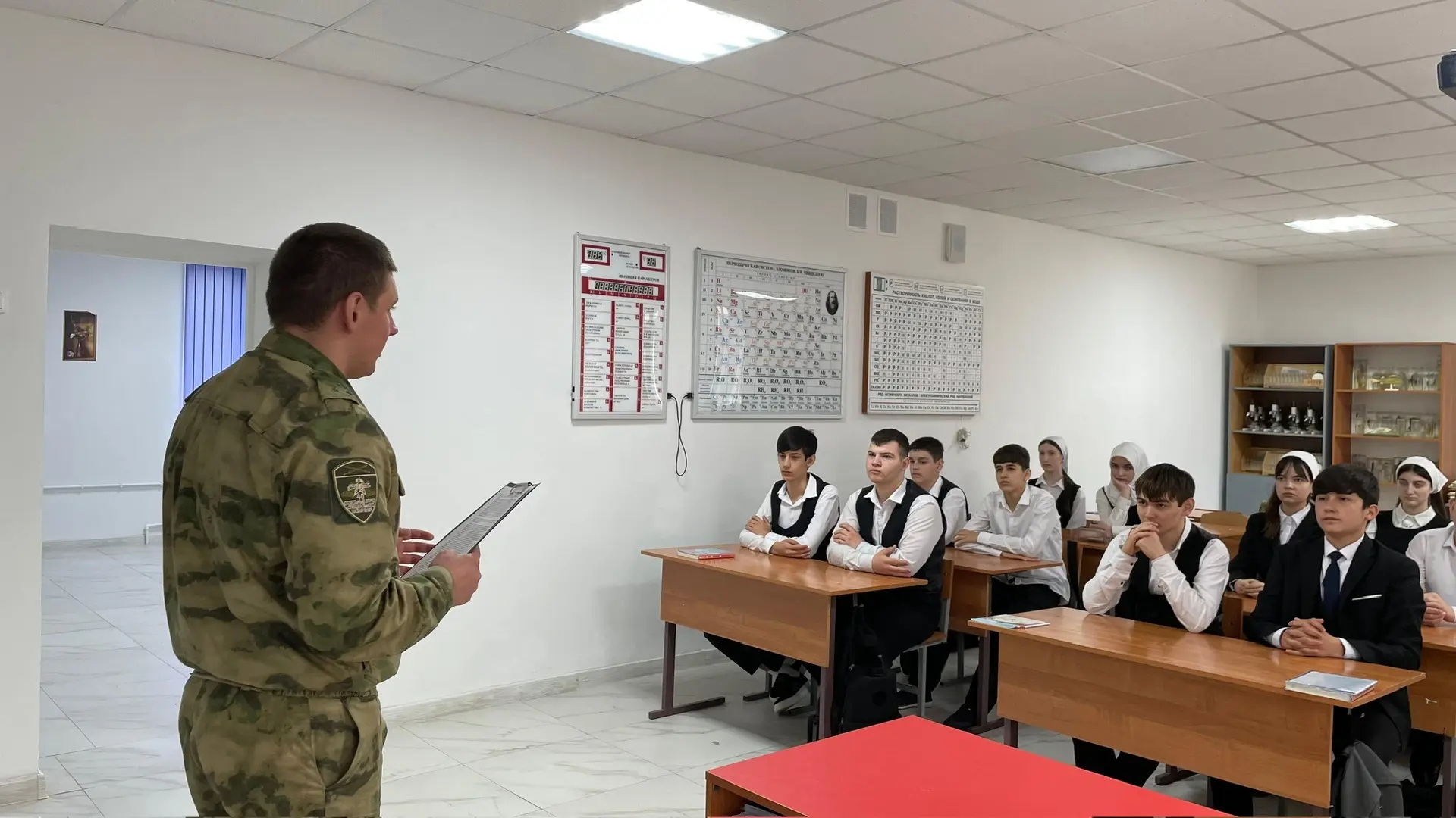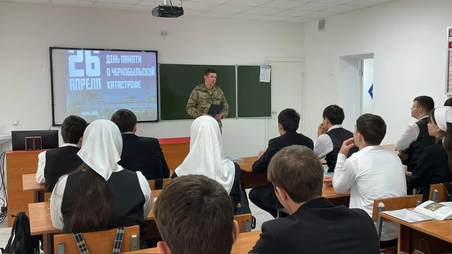 В преддверии памятной даты — Дня памяти о чернобыльской катастрофе — в 9-А классе МБОУ «СОШ №3 г. Шелковская» состоялся урок мужества. В качестве почётного гостя мероприятие посетил военнослужащий войсковой части №6499 войск Национальной гвардии Российской Федерации, старший лейтенант Михаил Черванёв.