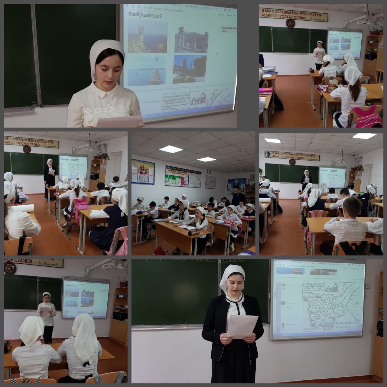 В рамках Всероссийской акции «Русский Крым и Севастополь» обучающиеся 10 класса МБОУ «СОШ №3 ст.Шелковская» провели с учащимися 5 класса интерактивный урок на тему: «Крым-наша история».