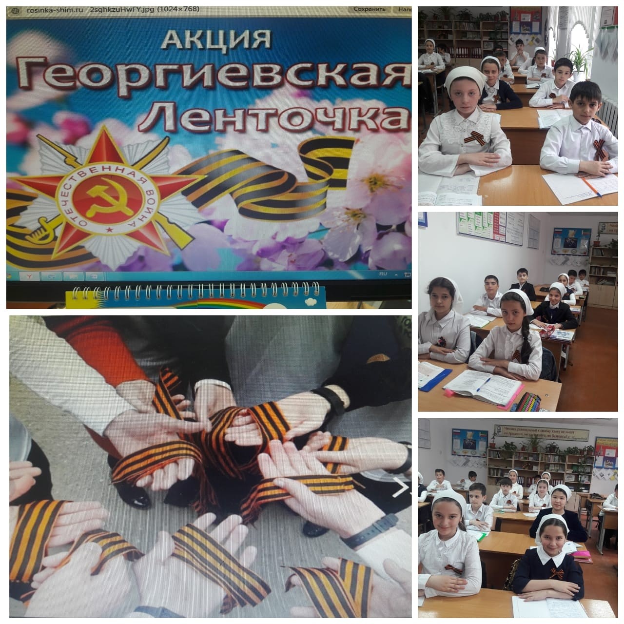 Акция "Георгиевская ленточка" продолжается. Участие принимает 5а класс с классным руководителем Эльдаровой Э.А.